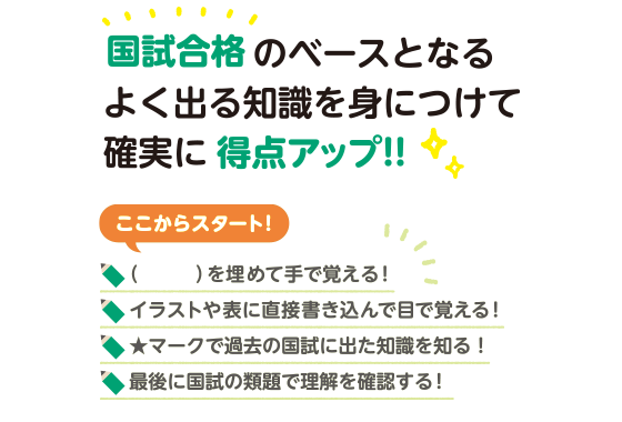 すでに国試対策を始めている人も、これから国試対策を始める人も、本書で国試対策の弱点を補強しよう!
